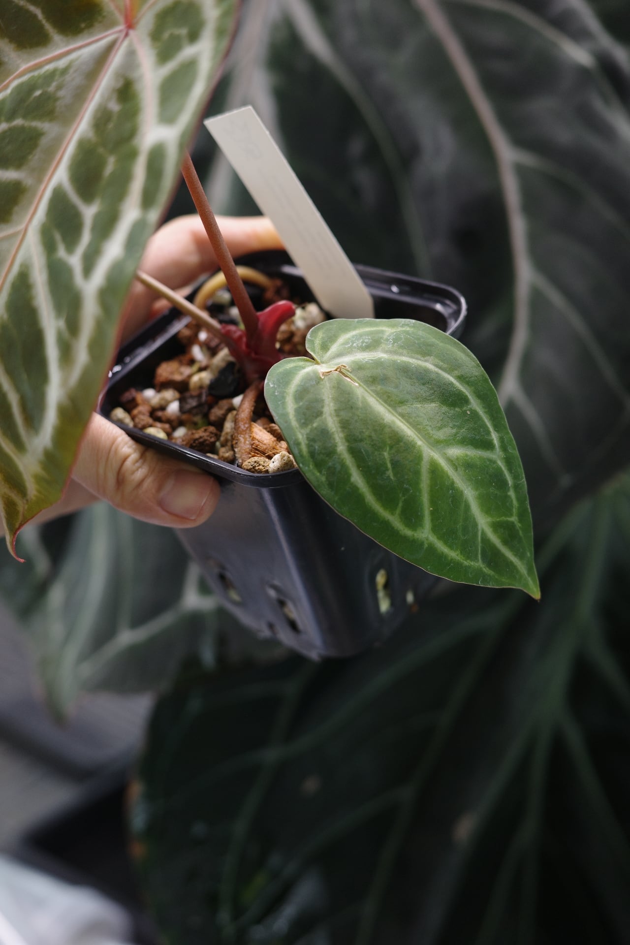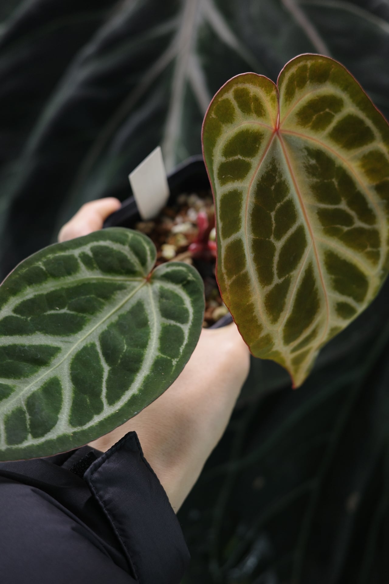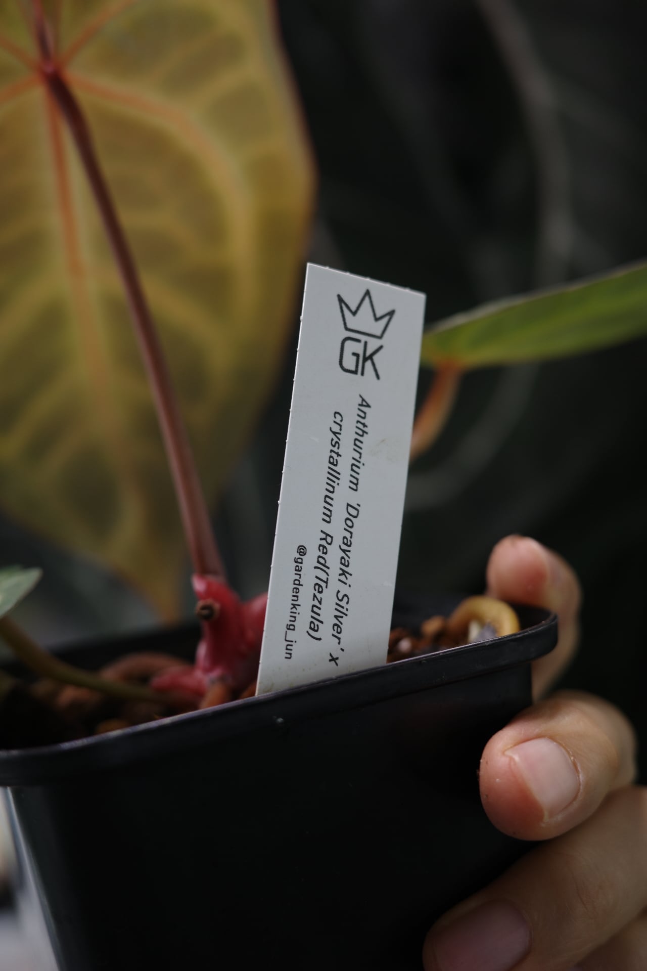Anthurium ‘Dorayaki Silver’ x ‘Crystallinum Red’ (Tezula)