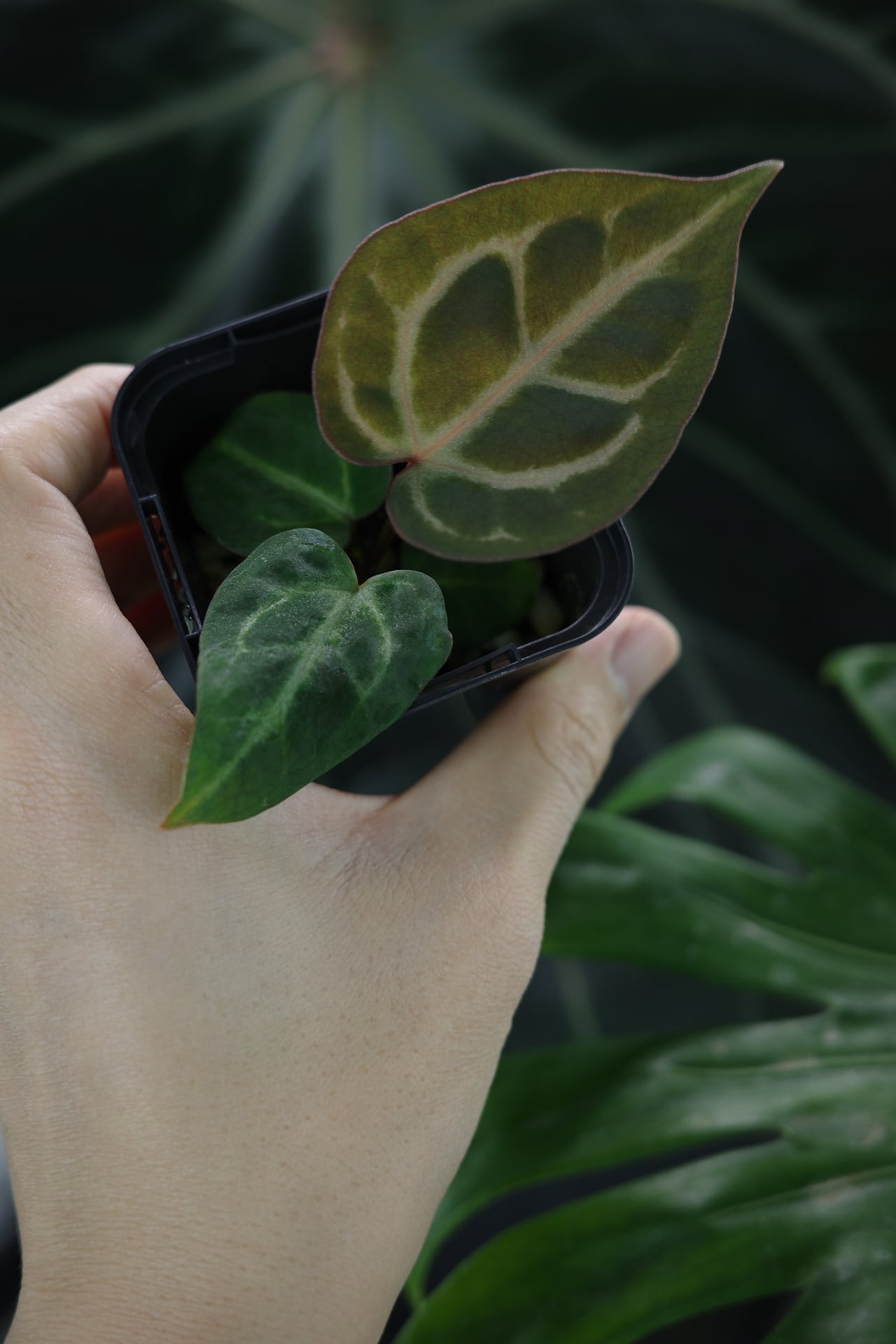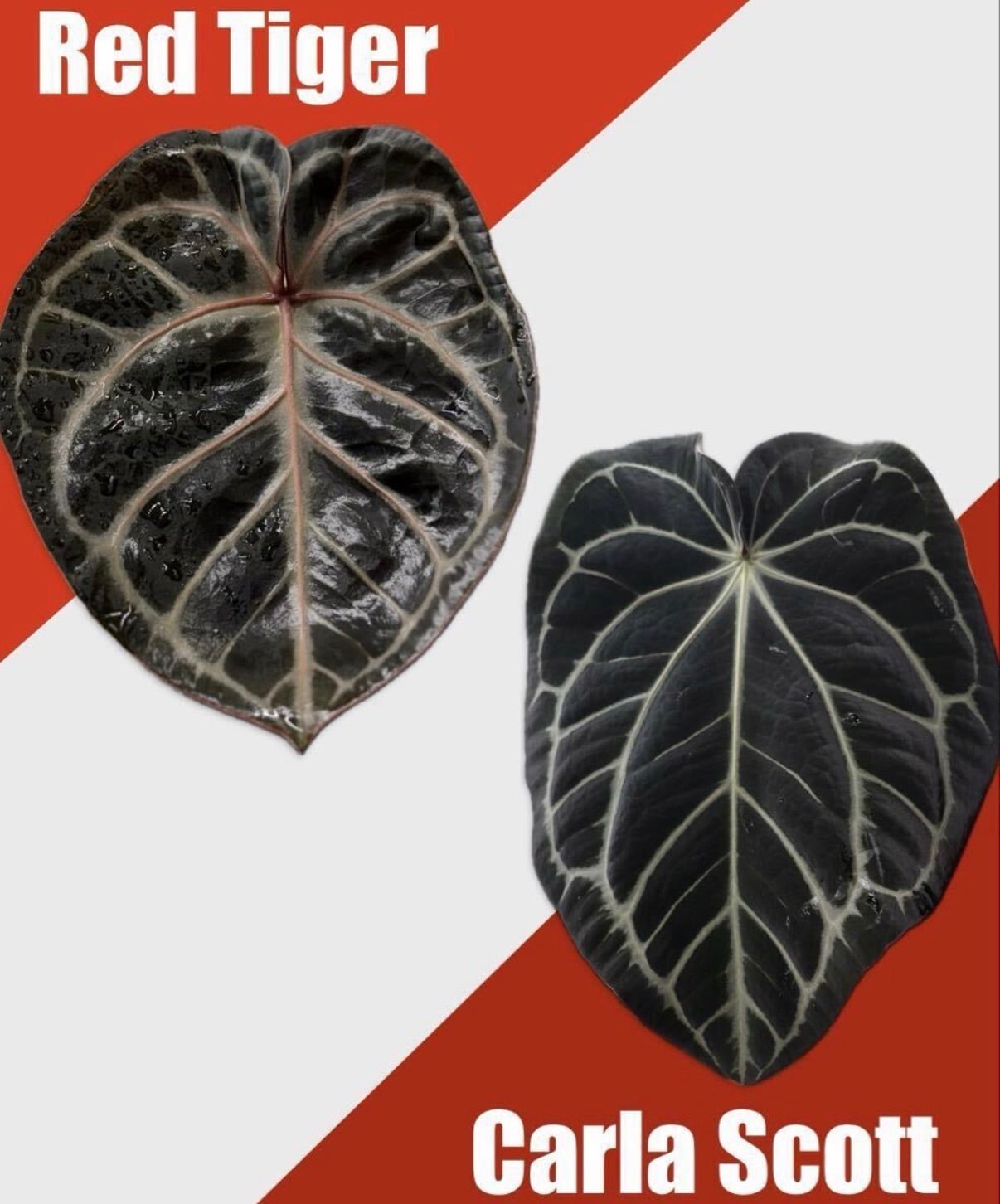 Anthurium ’Red Tiger’ x carlablackiae (Scott)