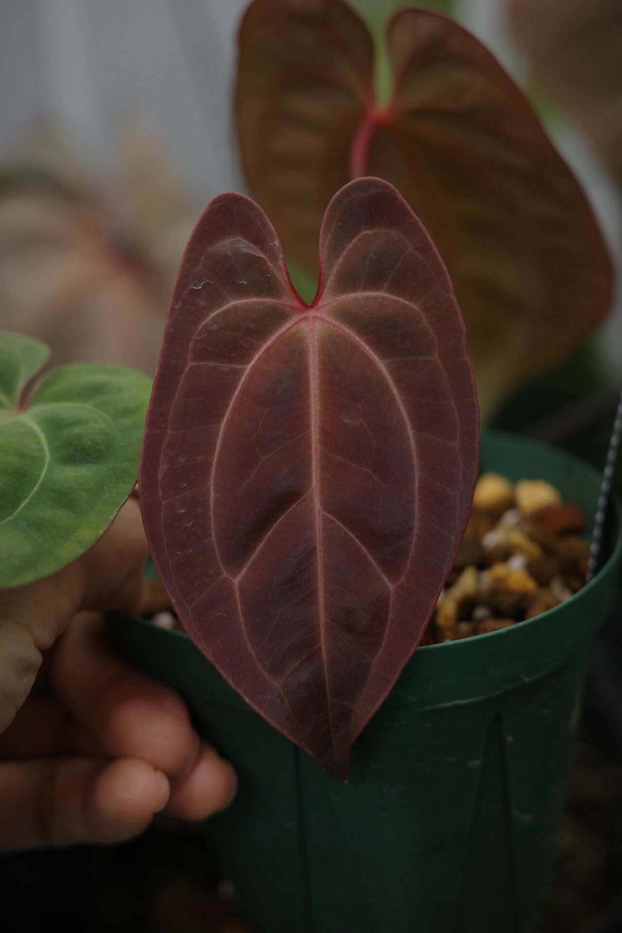 PCFで様々な交配に用いられているaff. besseae Ghost のセルフです。新葉は非常に赤い発色を見せ、玉虫色の葉に落ち着きます。