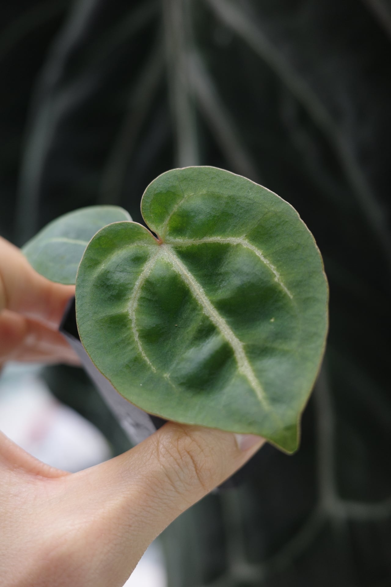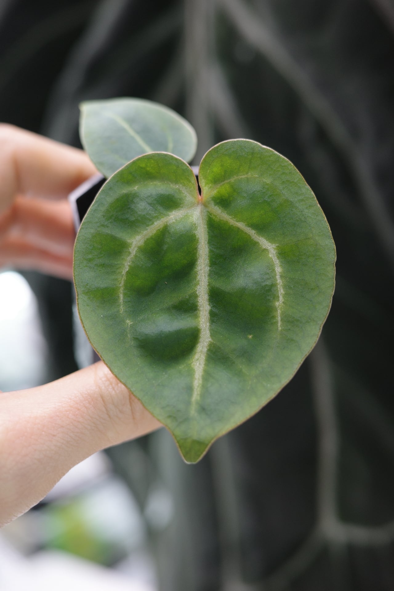 キラキラ葉脈にラウンドリーフのかわいらしい個体です。アンスリウムを始めたての方にお勧めしたい株です。