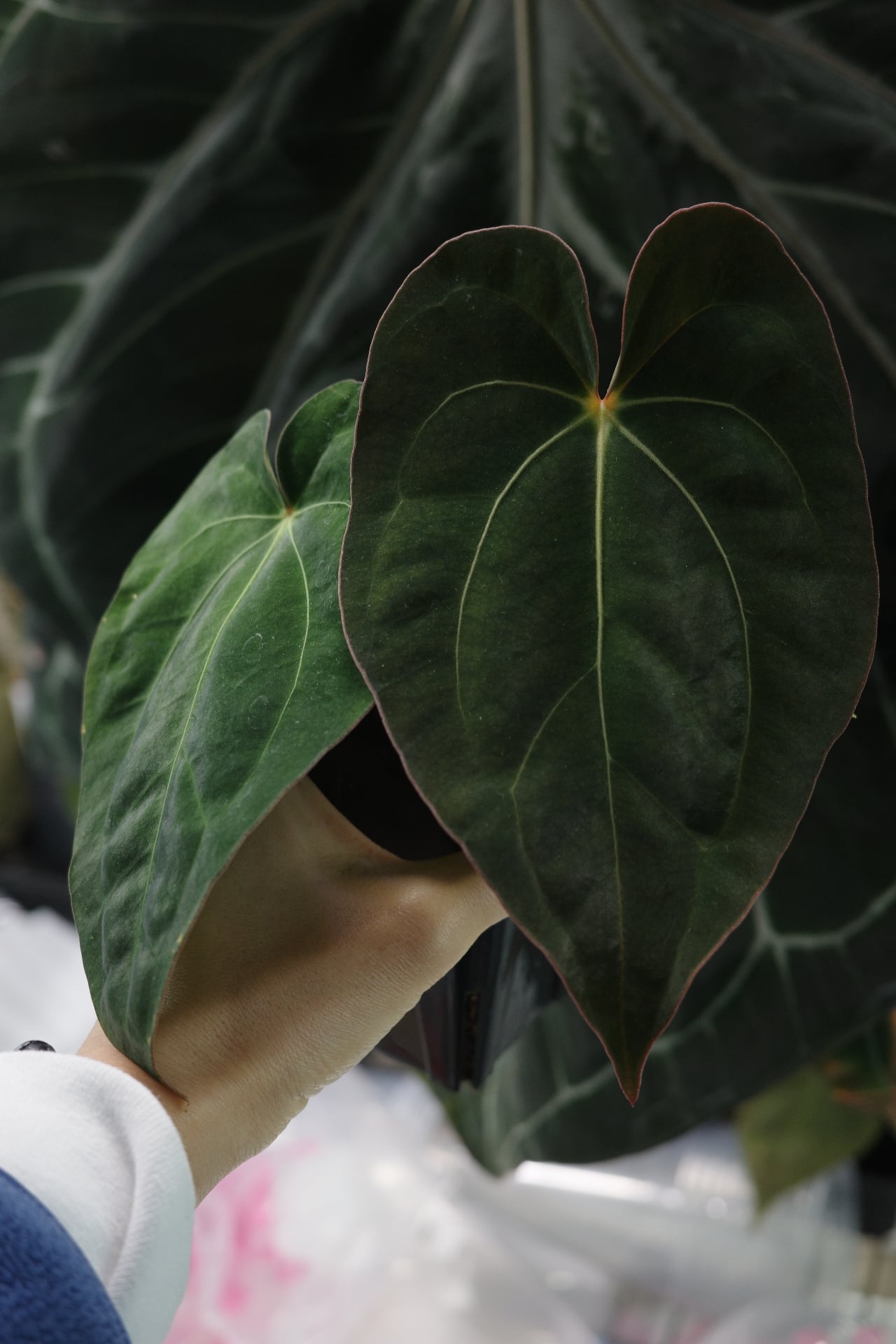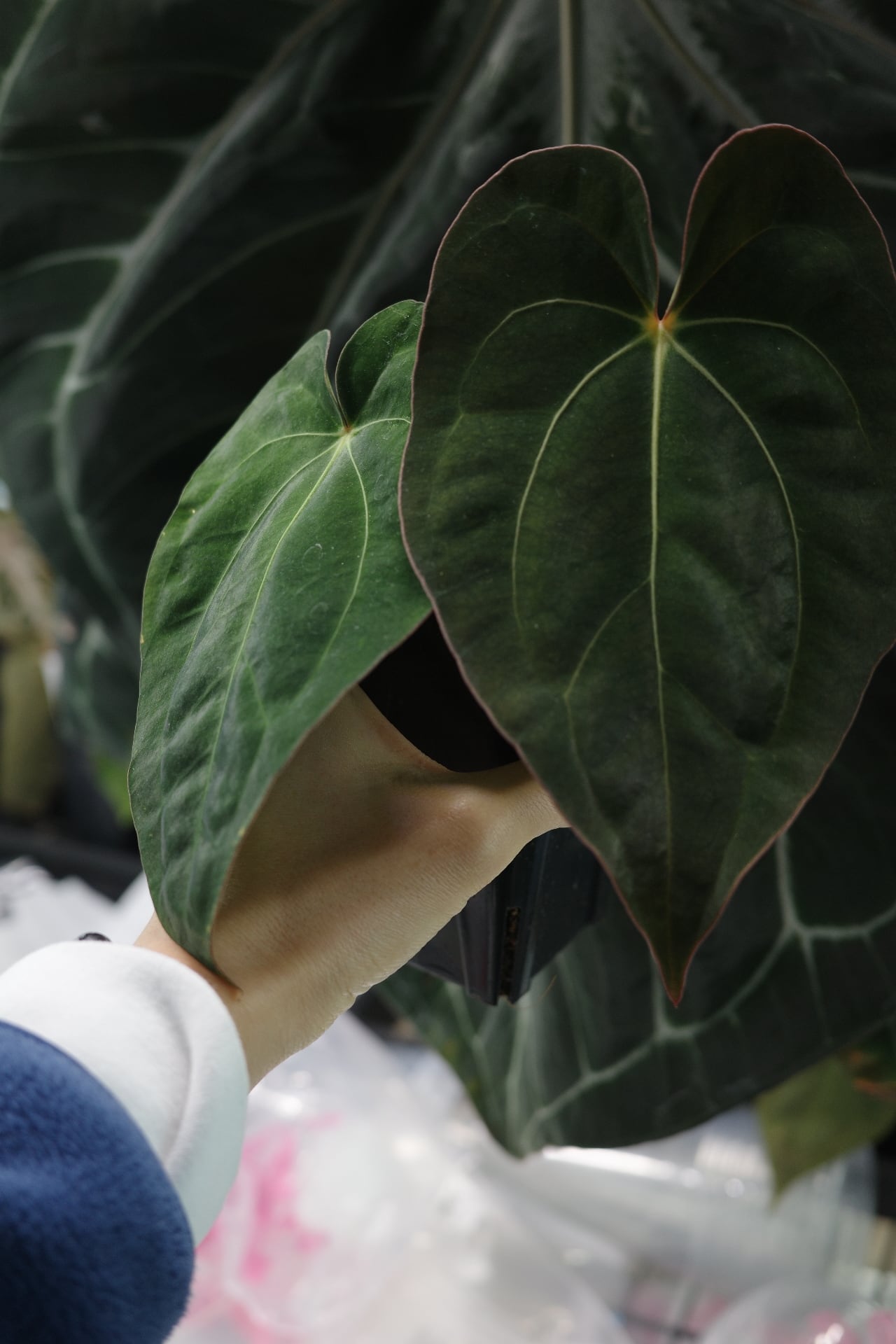 出品個体は特に丸みが強く、繊細な葉脈が印象的です。葉色もダークで、成長に伴ってこうした特徴がさらに際立っていくでしょう。